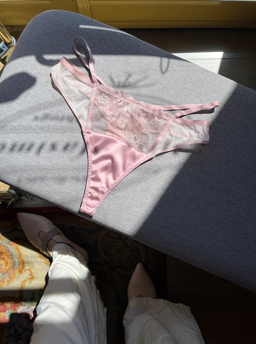 Pinky Satin Strappy Thong